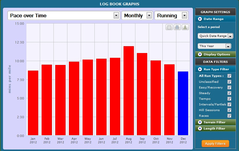 Pace over Time December 30, 2012 805 × 507 Running stats for 2012 Details my average pace on month by month