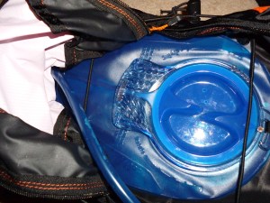 Apparently you can take up to eight water bottles on the pack, 2 in the mesh holders on the back, 2 in i-gamy holders on the shoulder straps and 2 in i-gamy holders on the waist straps (I still need to workout how the i-gamy fitst to the waist straps!!). The picture above shows how I am running the pack at the moment, with a 2 litre Camelbak and i-gamy, although i probably will get another i-gamy for the right shoulder to keep the balance level.