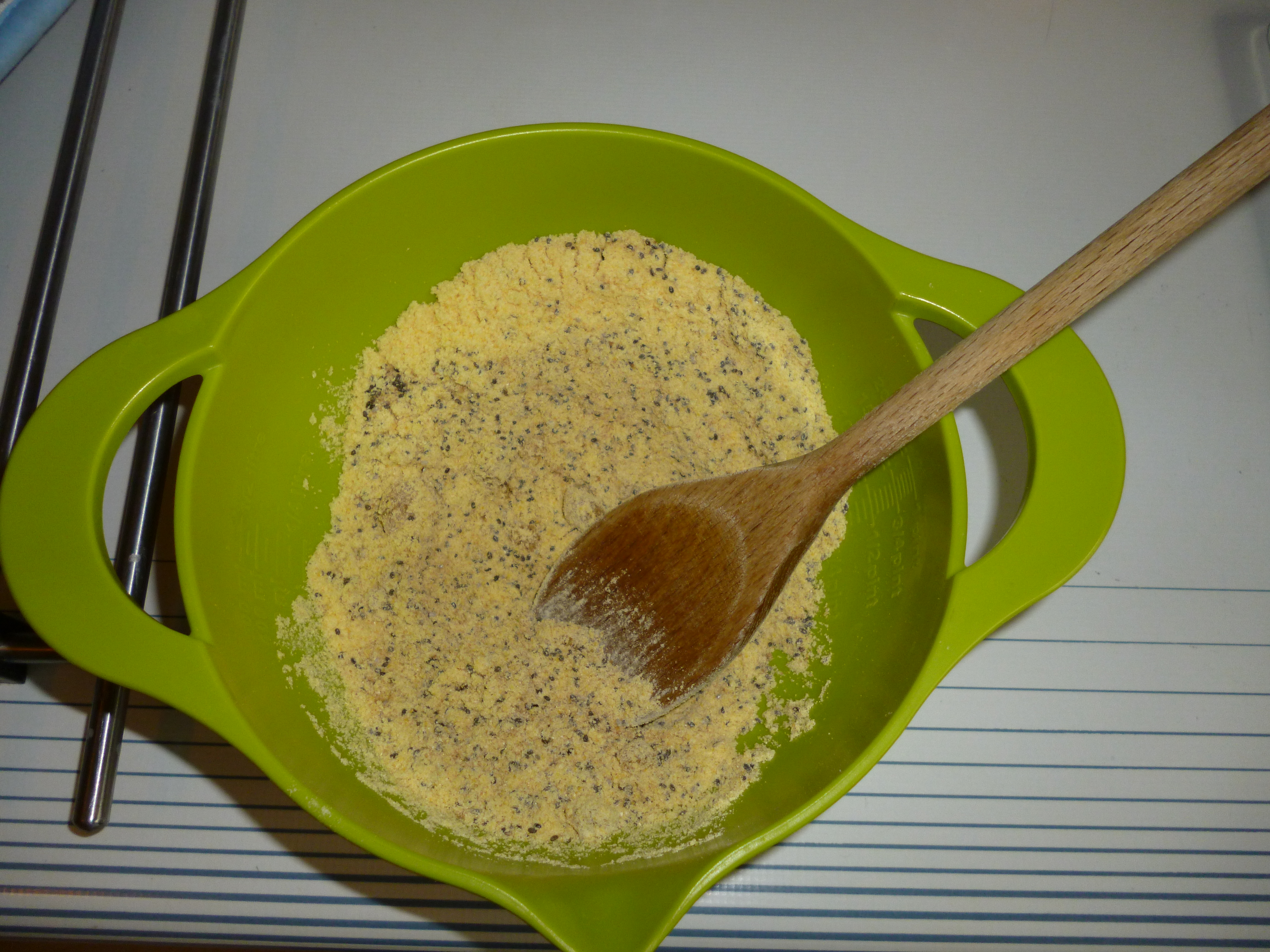 The basic ingredients I got from the supermarket, having to substitute cornmeal with maizemeal and I ordered the Chia seeds from Amazon.