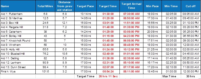 I am approaching this one differently than the 50 last year, where as that I was looking for an average pace across the whole distance, with the 100 I have broken each aid station down into a stage and pace each as needed.
