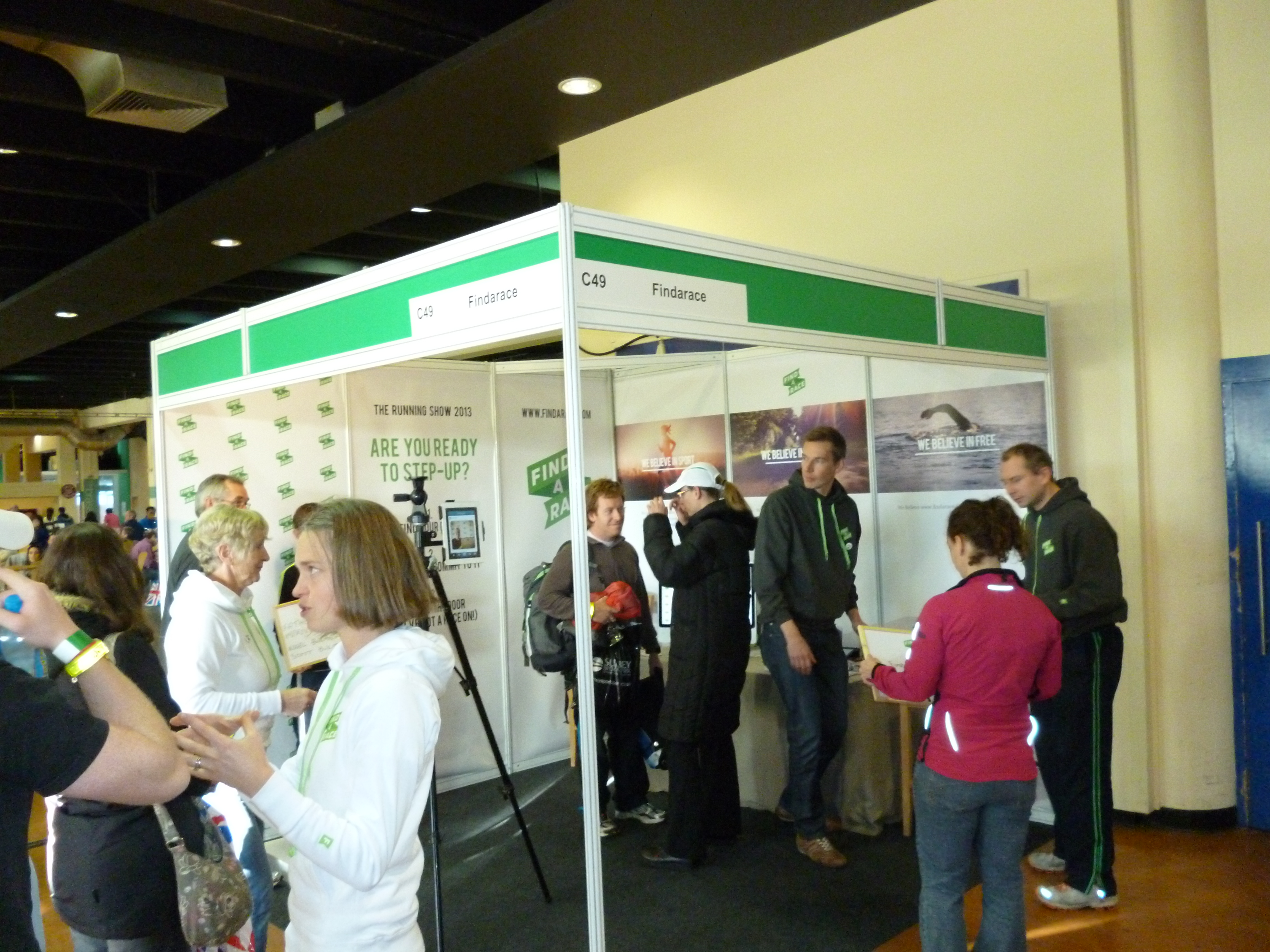 After collecting the goodie bag (which incidentally was ok but not great, a couple of nutrition samples accompanied by a lot of leaflets) we got chatting to the guys manning the Find a Race stand (www.findarace.com).