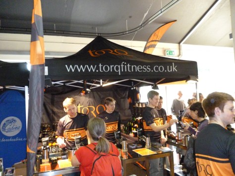 Opposite the Find a Race stand was the Torq stand, those that have read other posts in my blog will know that I am partial to the Rhubarb and Custard Torq gels and seeing that they had free samples we headed over. One of the guys on the stand had a chat with us and offered us a sample of the new recovery powder that they are doing. I tried the Chocolate Mint flavour, which was quite tasty although a sample to take away would have been more useful as I could have tried it after a training run.